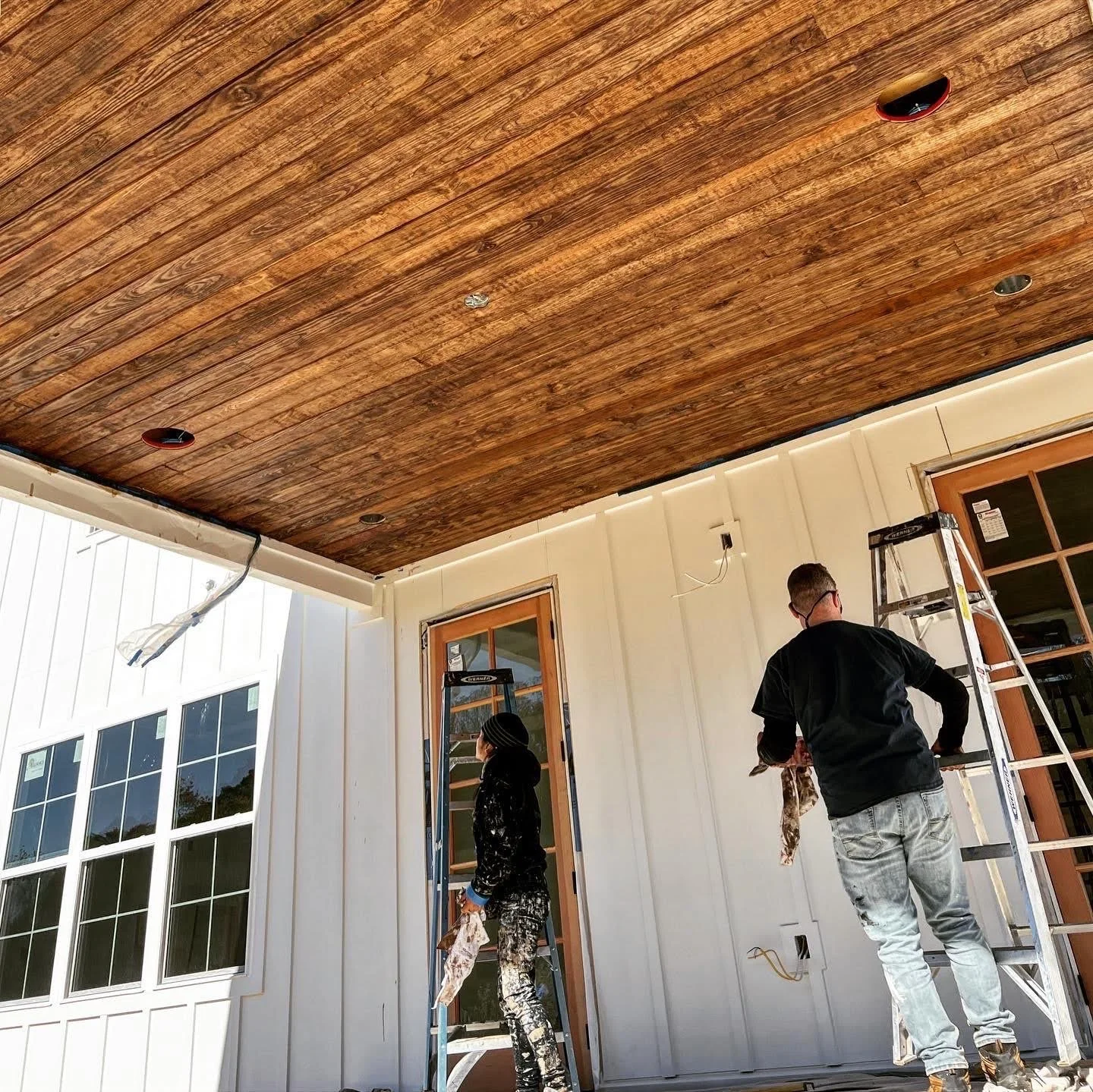 • Exterior Features: decks, railings, porch ceilings, pergolas, and other exposed woodwork